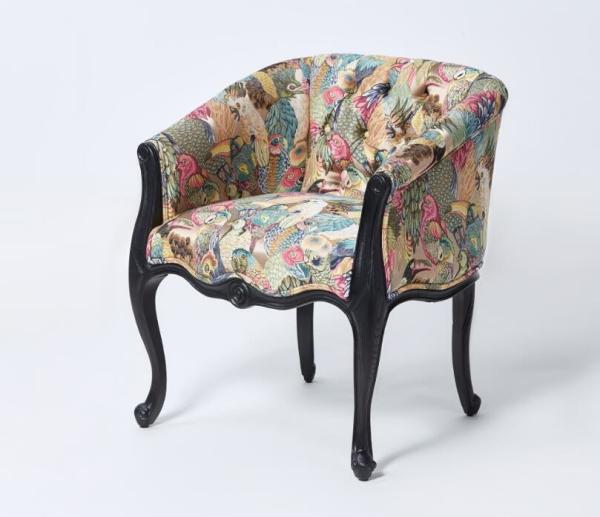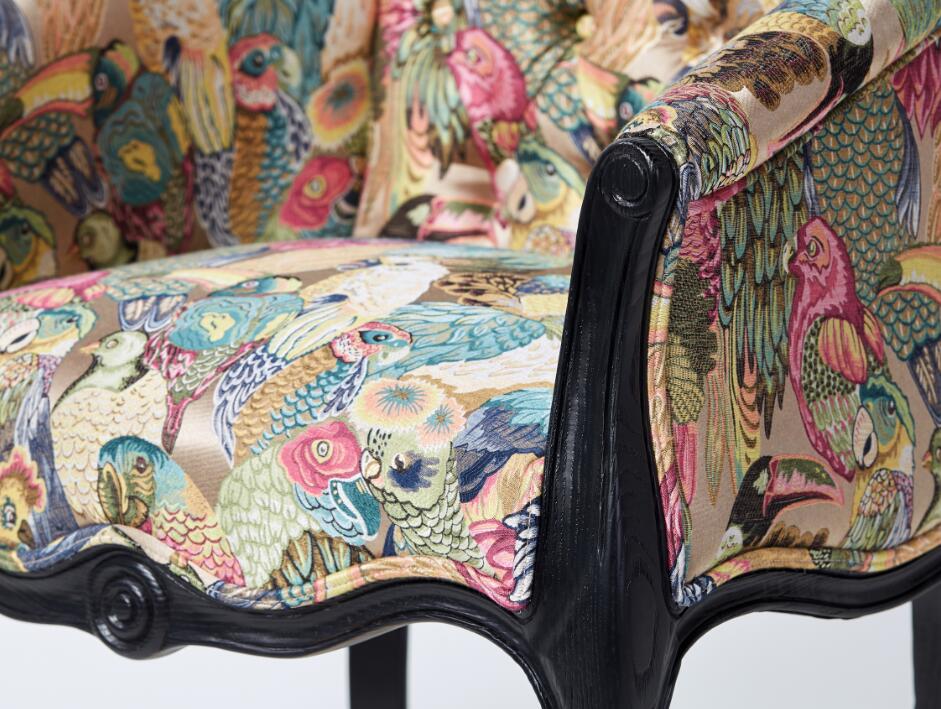 Elegant black oak Wood Frame French Style Chair Crazy birds Fabric Antique Armchair Accent chair Images |